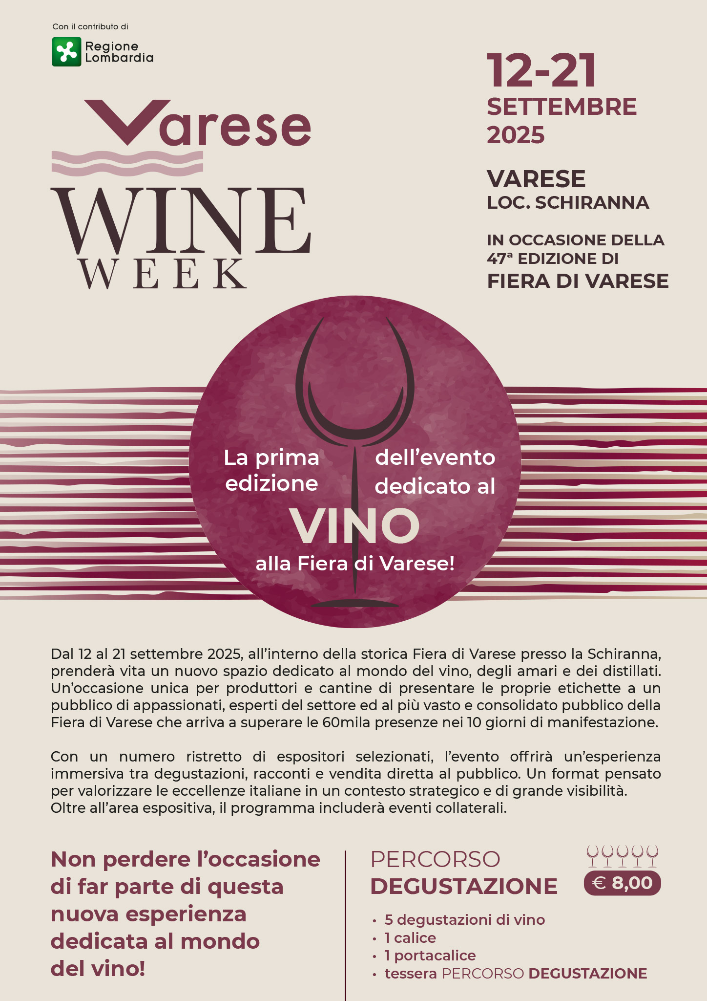 Dal 12 al 21 settembre 2025, all’interno della storica Fiera di Varese presso la Schiranna, prenderà vita un nuovo spazio dedicato al mondo del vino, degli amari e dei distillati.
